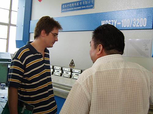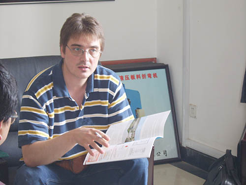 2005年7月26日上午,波蘭Projprzem Eko公司生產(chǎn)部總經(jīng)理米奧蘇華先生等一行來我公司參觀考察,米奧蘇華先生此行來我公司主要是洽談采購數(shù)控折彎機(jī)、剪板機(jī)事宜,考察中對(duì)我公司的產(chǎn)品表示非常滿意!