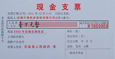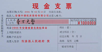 “中德機床”獲當(dāng)涂縣2005年度“創(chuàng)立品牌獎”
