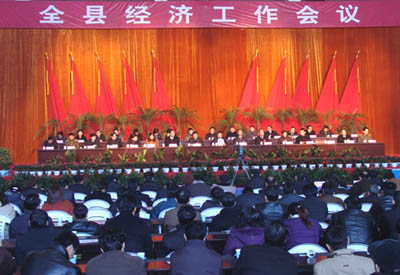 2006年2月10日上午,全縣經(jīng)濟工作會議在縣體育館隆重召開。這次全縣經(jīng)濟工作會議的主要任務(wù)是,全面貫徹落實中央和省、市經(jīng)濟工作會議和縣委十屆七次全體(擴大)會議精神,認(rèn)真總結(jié)了2005年經(jīng)濟工作,表彰了各項先進,全面部署了2006年各項目標(biāo)任務(wù),進一步統(tǒng)一全縣上下的思想認(rèn)識,搶抓機遇,扎實若干,努力實現(xiàn)全縣經(jīng)濟又快又好地發(fā)展,構(gòu)建和諧當(dāng)涂,為順利實施“十一五”規(guī)劃開好局、起好步??h長操隆山作了全縣經(jīng)濟工作報告,縣委書記毛長江發(fā)表了重要講話。縣委、縣人大、縣政府、縣政協(xié)、縣紀(jì)委、縣人武部負(fù)責(zé)同志,縣委委員、候補委員,縣紀(jì)委委員,縣人大常委、政協(xié)常委,曾擔(dān)任縣級實職的離退休老干部,各工委書記,各鄉(xiāng)鎮(zhèn)黨委書記、人大主席,鄉(xiāng)鎮(zhèn)長和文書,各村(居委員)總支(支部)書記、主任和縣直各部、委、局、辦負(fù)責(zé)人、部分機關(guān)干部代表等共計2000多名干部職工參加了會議。