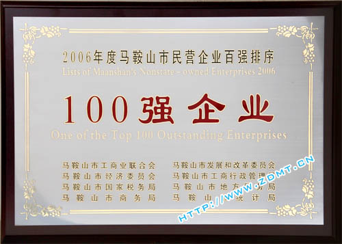 近期,由馬鞍山市工商業(yè)聯(lián)合會及馬鞍山市總商會聯(lián)合主辦,市發(fā)改委,經(jīng)委,工商局,國稅局,地稅局,商務(wù)局,統(tǒng)計(jì)局共同組織開展的2006年度全市民營企業(yè)百強(qiáng)排序工作已落下帷幕。我公司入圍2006年馬鞍山市民營企業(yè)營業(yè)收入總額100強(qiáng)及市民營企業(yè)納稅總額100強(qiáng),也是我公司連續(xù)三年獲此殊榮。