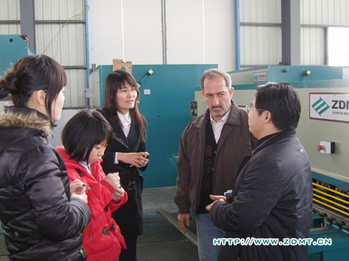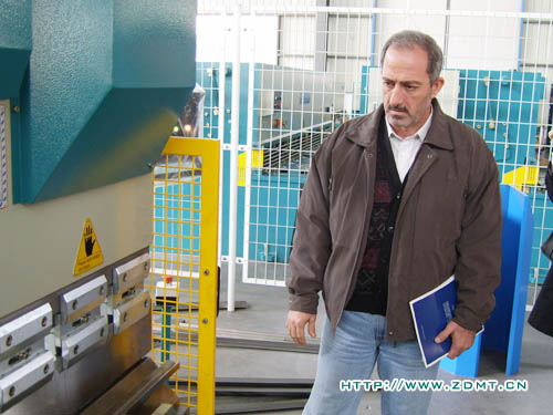 Haiyl A.AI Rawy先生對(duì)中國(guó)機(jī)械行業(yè)尤其是剪板機(jī)折彎?rùn)C(jī)非常的熟悉,他表示他們非常重視機(jī)器的質(zhì)量,來(lái)中德也是由于中德機(jī)器在海內(nèi)外都享有良好的聲譽(yù)。參觀前,Haiyl A.AI Rawy還特意詢(xún)問(wèn)我們?cè)诎⒙?lián)酋有沒(méi)有代理,當(dāng)公司領(lǐng)導(dǎo)回答說(shuō)目前還沒(méi)有時(shí),他釋然一笑,表示希望能夠與中德建立良好的合作關(guān)系。在中德的成品車(chē)間,Haiyl A.AI Rawy先生聽(tīng)取了我公司營(yíng)狀況及近遠(yuǎn)期規(guī)劃的介紹,并就每一款機(jī)床的詳細(xì)情況進(jìn)行了介紹,重點(diǎn)詢(xún)問(wèn)了其性能及售價(jià)等。他對(duì)我們的數(shù)控折彎?rùn)C(jī)尤其感興趣,要求當(dāng)場(chǎng)進(jìn)行測(cè)試。Haiyl A.AI Rawy特意讓自己的助理拍下了整個(gè)操作過(guò)程,在我公司工程師的幫助下,Haiyl A.AI Rawy還進(jìn)一步了解了折彎?rùn)C(jī)數(shù)控系統(tǒng)的編程方面的問(wèn)題。