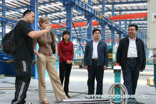 這位波蘭客人對(duì)機(jī)械行業(yè)非常了解,她告訴我們,他們的工廠車間里正在使用歐美品牌的同類機(jī)器,對(duì)其使用和操作流程都非常的熟悉,當(dāng)然,看機(jī)器的眼光也是相當(dāng)?shù)膶I(yè)。這次中德行的目的主要是考察我們公司的大型雙機(jī)聯(lián)動(dòng)折彎?rùn)C(jī)。參觀過我們的投入使用不久的大型裝配車間后,客人立即表示對(duì)中德的生產(chǎn)規(guī)模和產(chǎn)品質(zhì)量非常的滿意,是一家值得信賴和合作的優(yōu)秀制造商,客人希望以后能夠代理我們的產(chǎn)品以期與我們建立長(zhǎng)期合作的貿(mào)易關(guān)系。